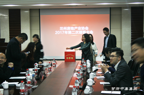 隨后,根據(jù)《蘭州市房地產(chǎn)業(yè)協(xié)會章程》,會議進(jìn)行了協(xié)會會長改選。主持人首先介紹了會長選舉制度,由到場前任會長單位、副會長單位、理事單位、會員單位及各單位代表進(jìn)行了莊重嚴(yán)肅的投票,根據(jù)投票結(jié)果,甘肅中集實業(yè)集團(tuán)有限公司董事長周啟濤先生高票當(dāng)選蘭州市房地產(chǎn)業(yè)協(xié)會新一任會長。蘭州民間組織管理局主任李 萍女士對選舉過程進(jìn)行了監(jiān)督,并向大會宣布此次選舉公正有效。