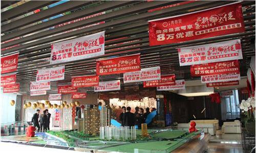 墻頂上吊下來金光燦燦的金蛋,充滿著喜慶;凡認(rèn)籌客戶即可現(xiàn)場(chǎng)砸金蛋,領(lǐng)取家電大禮;同時(shí)可以抽取最高18888元的購(gòu)房紅包(代金券)。