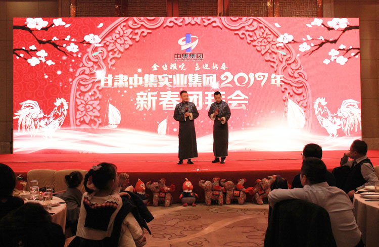金雞報(bào)曉,喜迎新春。1月25日,甘肅中集實(shí)業(yè)集團(tuán)2017年新春團(tuán)拜會(huì)在皇冠假日酒店三樓宴會(huì)廳隆重舉行。甘肅中集實(shí)業(yè)集團(tuán)有限公司董事長(zhǎng)周啟濤、副總裁周啟濱攜公司高層、企業(yè)員工共襄盛舉,攜手邁進(jìn)充滿希望的2017年。