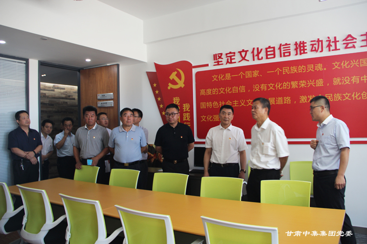 調(diào)研組一行首先參觀了集團(tuán)公司黨委宣傳陣地、黨員活動(dòng)室、談心談話室、閱覽室、健身中心等,通過(guò)查看黨支部建設(shè)標(biāo)準(zhǔn)化資料、聽取專題工作匯報(bào)和現(xiàn)場(chǎng)交談后,韓 旭副局長(zhǎng)對(duì)甘肅中集集團(tuán)黨委創(chuàng)新工作思路給予充分肯定,重點(diǎn)對(duì)黨支部建設(shè)標(biāo)準(zhǔn)化、樓宇黨建工作特色和亮點(diǎn),特別是集團(tuán)公司黨委開辟了非公經(jīng)濟(jì)組織黨建工作的新路子、在開展 “三崗聯(lián)創(chuàng)”、“三亮”、“立足崗位做貢獻(xiàn)”等活動(dòng)中取得優(yōu)異成績(jī)給予充分肯定。他強(qiáng)調(diào):“甘肅中集集團(tuán)黨委黨建工作抓住了非公企業(yè)黨建存在問(wèn)題的關(guān)鍵,充分發(fā)揮了黨組織的政治優(yōu)勢(shì)和組織優(yōu)勢(shì),通過(guò)黨員隊(duì)伍建設(shè)和加強(qiáng)組織力,提高了企業(yè)經(jīng)營(yíng)管理水平,黨建各項(xiàng)工作求真務(wù)實(shí),開拓創(chuàng)新”。他現(xiàn)場(chǎng)向西北五省、市非公黨建負(fù)責(zé)人強(qiáng)調(diào):“要以此次觀摩為契機(jī),認(rèn)真學(xué)習(xí)借鑒甘肅中集集團(tuán)黨委的成功經(jīng)驗(yàn)和做法,特別是把黨支部建設(shè)在樓宇、打造紅色紐帶工程和深入推進(jìn)黨支部建設(shè)標(biāo)準(zhǔn)化、強(qiáng)化組織建設(shè)、創(chuàng)新活動(dòng)方式、營(yíng)造非公經(jīng)濟(jì)組織黨建工作的濃厚氛圍、為提升樓宇總部經(jīng)濟(jì)高質(zhì)量發(fā)展提供堅(jiān)強(qiáng)的政治保障和組織保障方面要大力學(xué)習(xí)和推廣。”